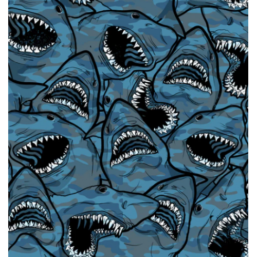 Sink Your Teeth into this exclusive *NEW* print featuring Great White Sharks swimming in an Ocean of Camo. Spacefish Army specializes in unique hand drawn prints that you won't find anywhere else!